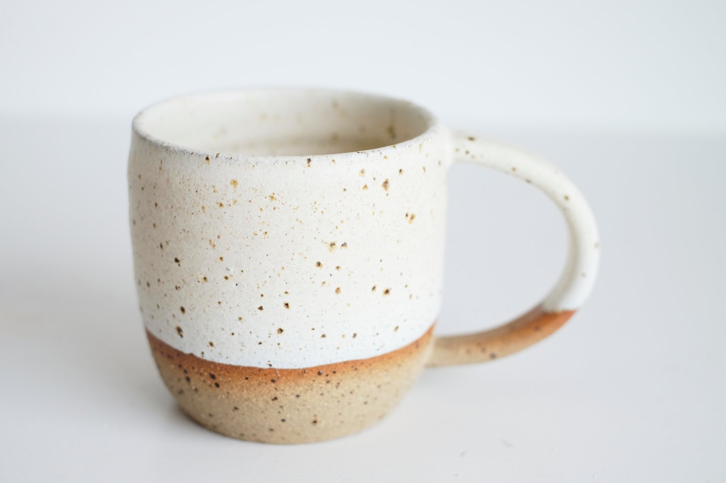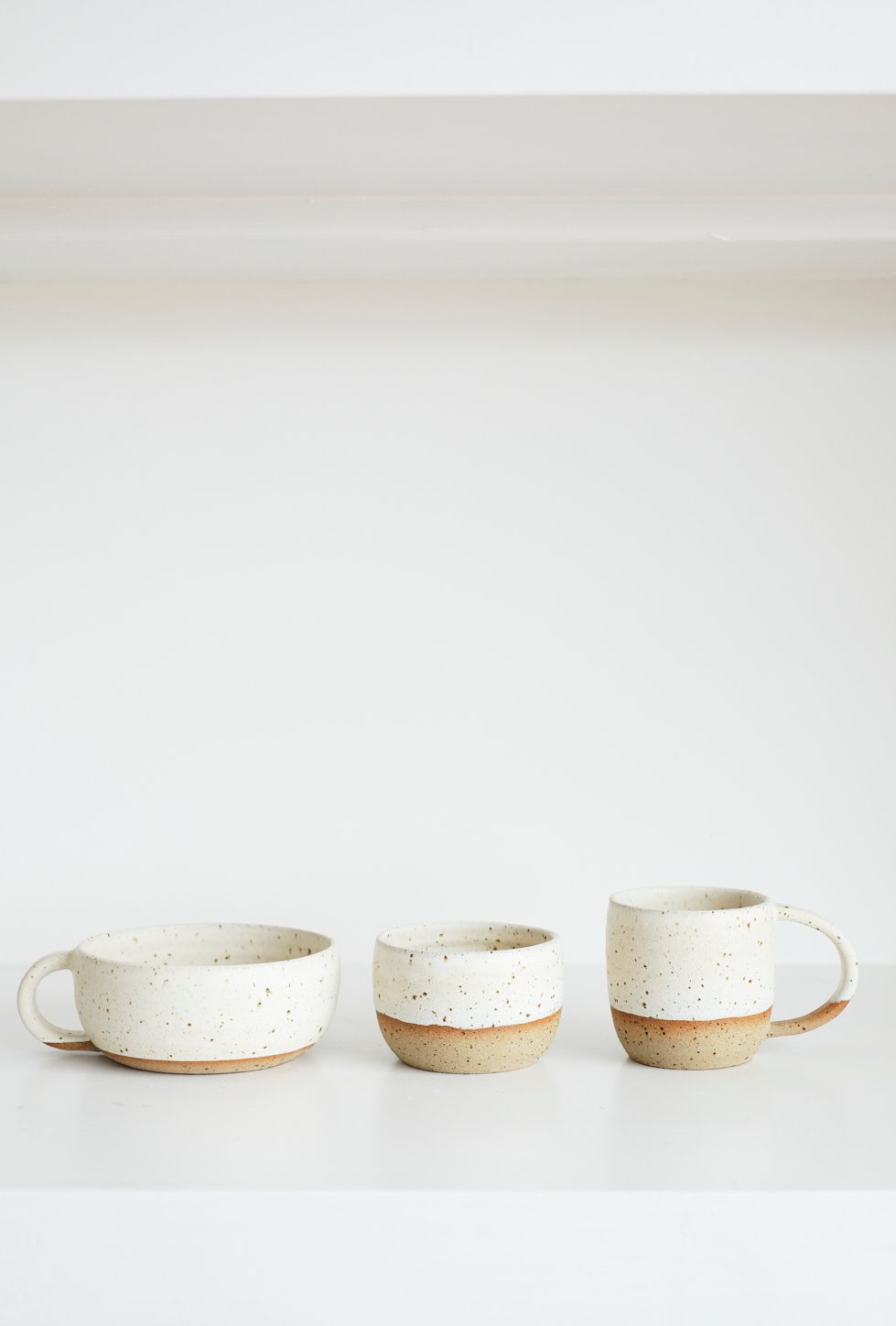 Made from a heavily speckled buff clay dipped in our Meadowsweet glaze.