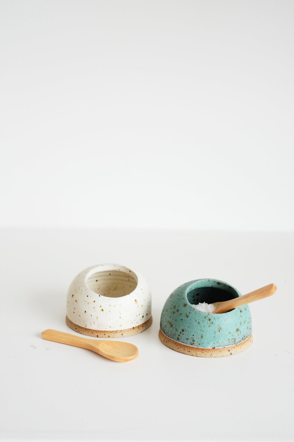 A small pot for serving salt and pepper and great to keep by the cooker, one of the most used items in our kitchen! Also great for jam and sauces.