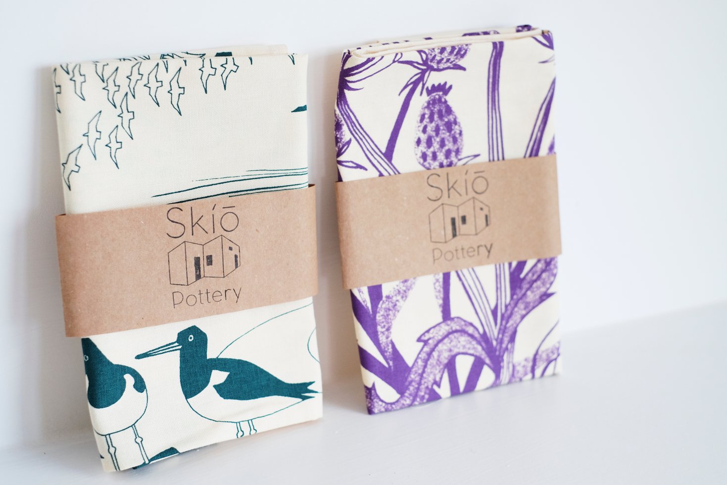 Visit Waternish tea towels featuring artwork by local artist Liz Myhill. Two different designs with views of our local wildlife and scenery.