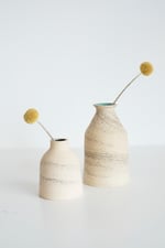 Made from a lightly speckled white clay, marbled with basalt sand from our local beaches then finished with our Coral Beach glaze on the interior. Each vase has a unique marbling from the sand moving around the pot as it is thrown.